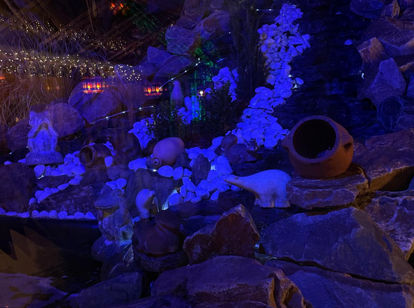 - einen gemütlichen Wintergarten mit besonderer Beleuchtung und Aussicht auf unseren eigens dafür gestalteten Wasserlauf.